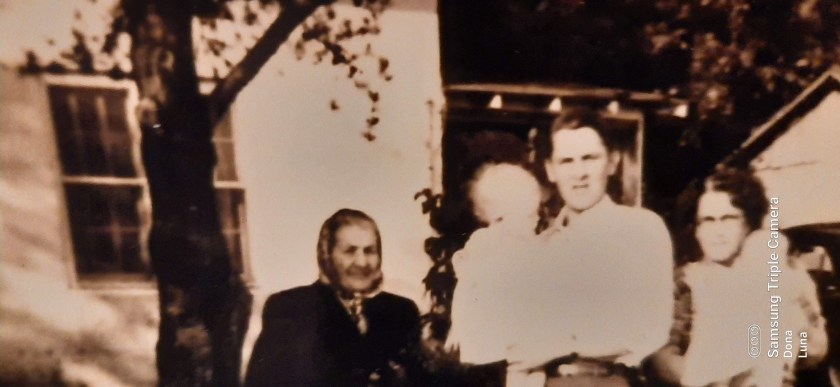 The picture I’ve included here is of ( left to right) , my great grandmother Laura Margret Creasy Wheeler, James Abner Wheeler , Dad , holding me and Granny Minnie Zola holding my cousin Pam Ragland .