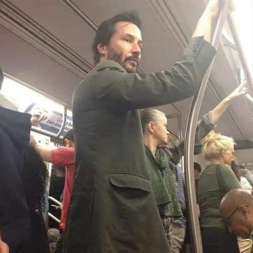 “This is Keanu Reeves riding the subway. He was abandoned by his father at just 3-years-old and grew up with 3 different stepfathers. He is dyslexic and his dream of becoming a hockey player was shattered by a serious accident. His daughter died at birth. His wife died in a car accident, and his best friend, River Phoenix, died of an overdose. He also stayed by his sister’s side as she battled leukemia.