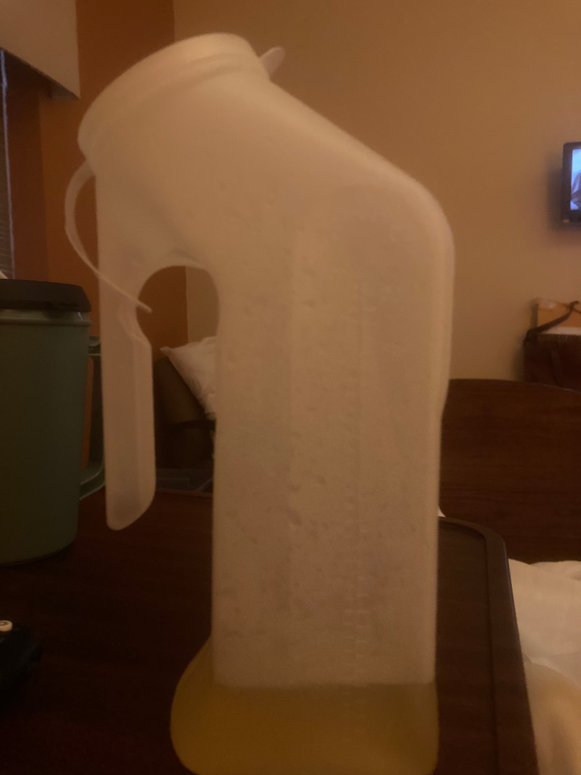 The exploratory surgery while I had a very bad UTI and ruptured appendix procedure has me weak but able to use the urnial to the amazement of my aids ; I’m damn good at it .