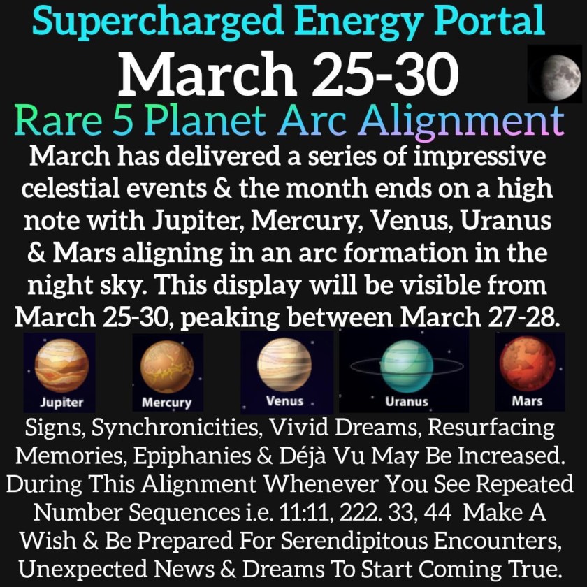 Jupiter, Mercury, Venus, Uranus, and Mars, will form an arc in the night sky, and this rare and extraordinary event will be visible from March 25th to March 30th, with the peak being on March 28th.