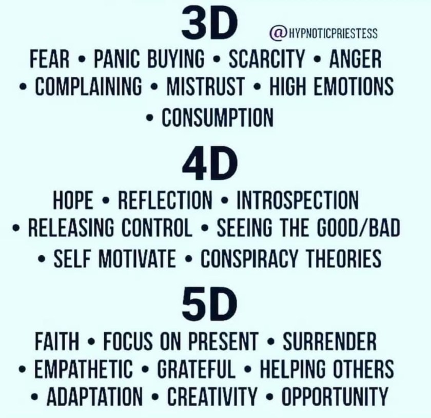 So, pay attention to where you are on the chart below, then pay attention to your thoughts. If you are hovering in 3D/4D, shift your thoughts into 5D.