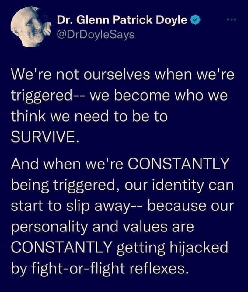 Getting triggered by small things shows extreme nervous system dysregulation. Get some healing, grow your resilience, and then you won’t get hijacked by every little thing. Big things can always trigger us, and instead of being powerless, we can use the trigger as an impetus for dealing with the situation from a resilient and empowered place.