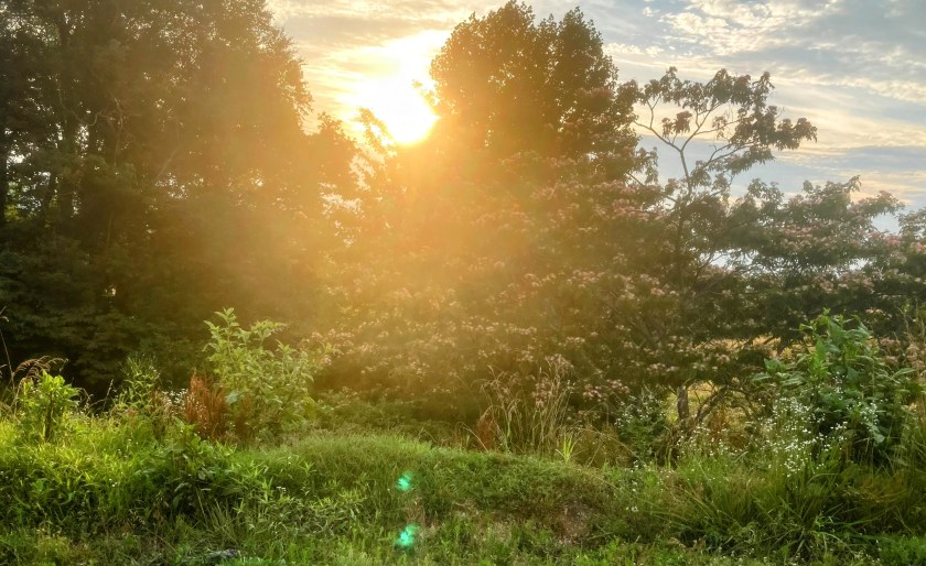 The Mimosa tree , far right, lower in her magnificence, reminders of Granny Minnie Zola’s from yard in Salem, Va. They grew proliferating, and I had some of her trees in my back yard , which was thrilling .