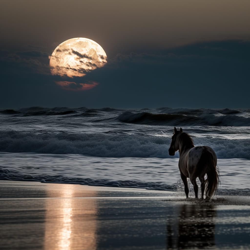 Horse, Corolla NC Beach , Full Moon –