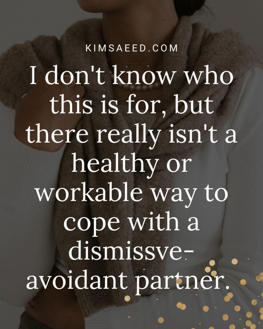 I saw a post on another account today touting the ways to cope with a “dismissive-avoidant”, with baloney tips that folks have already desperately tried, all to no avail.