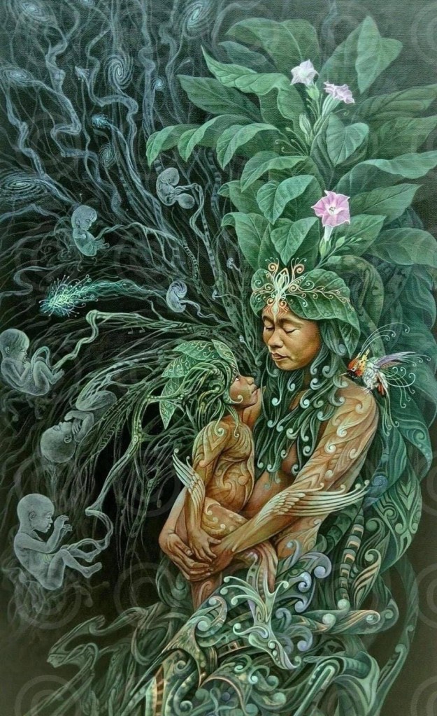 Earthly beings… You are comprised of: 84 minerals, 23 Elements, and 8 gallons of water spread across 38 trillion cells. You have been built up from nothing by the spare parts of the Earth you have consumed, according to a set of instructions hidden in a double helix and small enough to be carried by a sperm. You are recycled butterflies, plants, rocks, streams, firewood, wolf fur, and shark teeth, broken down to their smallest parts and rebuilt into our planet’s most complex living thing. You are not living on Earth. You are Earth. – Aubrey Marcus Nature is not matter only. She is also spirit.- Carl Jung Artist -Lobsang Melendez Ahuanari