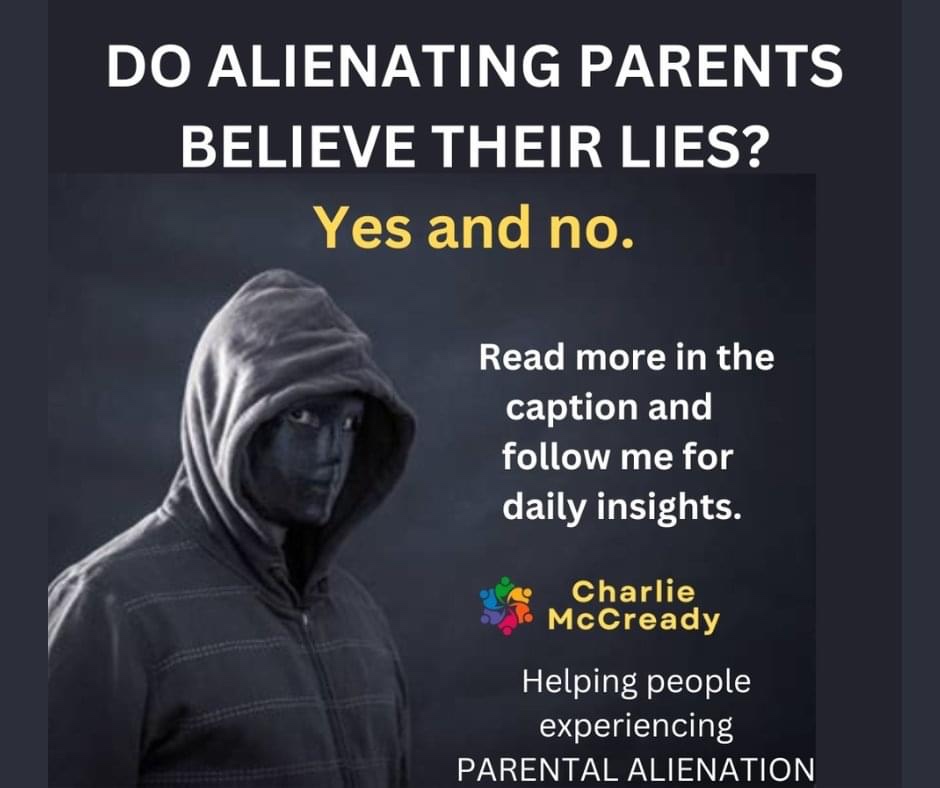 The motivations and psychological processes of alienating parents can vary, making it challenging to generalise their behaviour. In some cases, alienating parents may genuinely believe their lies, deluding themselves into thinking they are protecting their children or acting in their best interest. These individuals might have convinced themselves that the target, alienated parent is a danger or unworthy of the child’s love, and they may genuinely believe the false narrative they have constructed. Their actions may be driven by cognitive dissonance, where they unconsciously justify their behaviour to align with their self-image as a “good” parent, even as their actions cause harm.