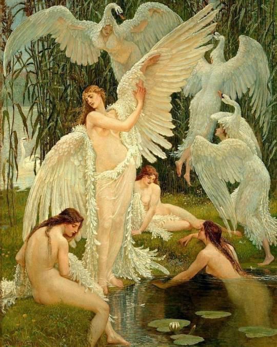 Walter Crane – The Swan Maidens, 1894.