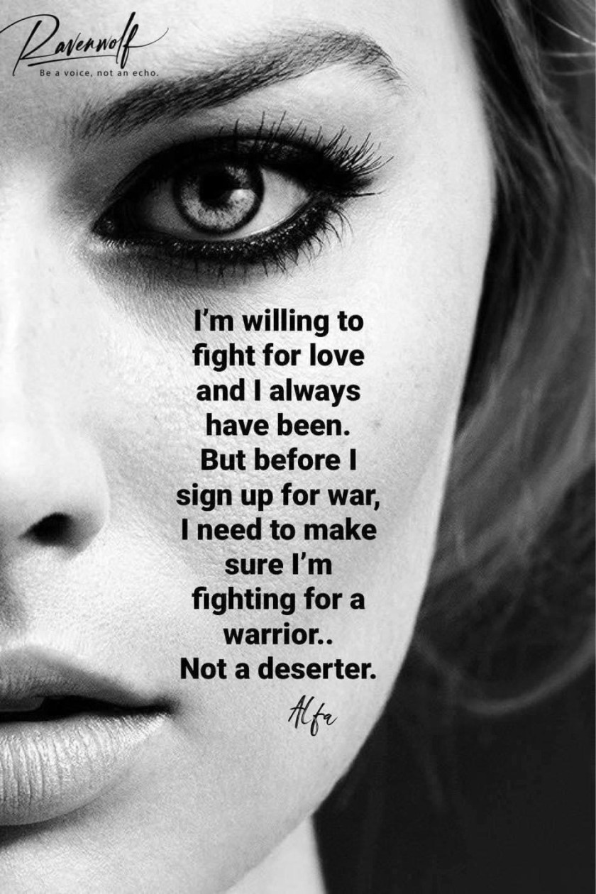 I believe in love and my heart is open, but I’m holding out for the one who will stand and fight for me, for us.