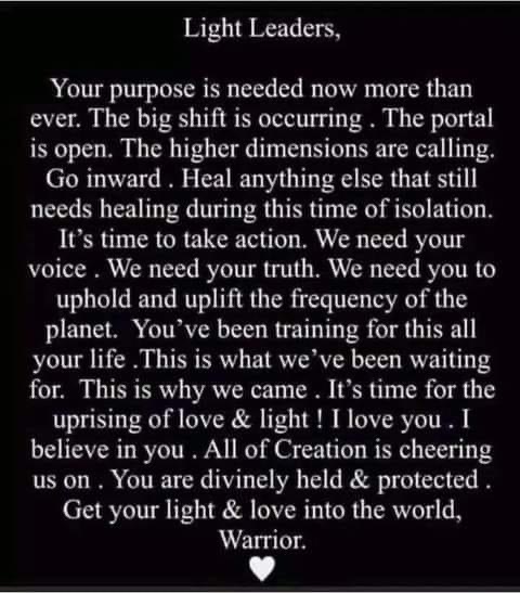 We decide to look beyond the programming, the fear and the control, to see what’s just past that. And that’s where we find the door to our own divinity, to cosmic wholeness, to our inherent magnificence, to the world we’ve always intuitively known was there, our heaven on earth. And we know beyond a shadow of doubt that that is where we are going.