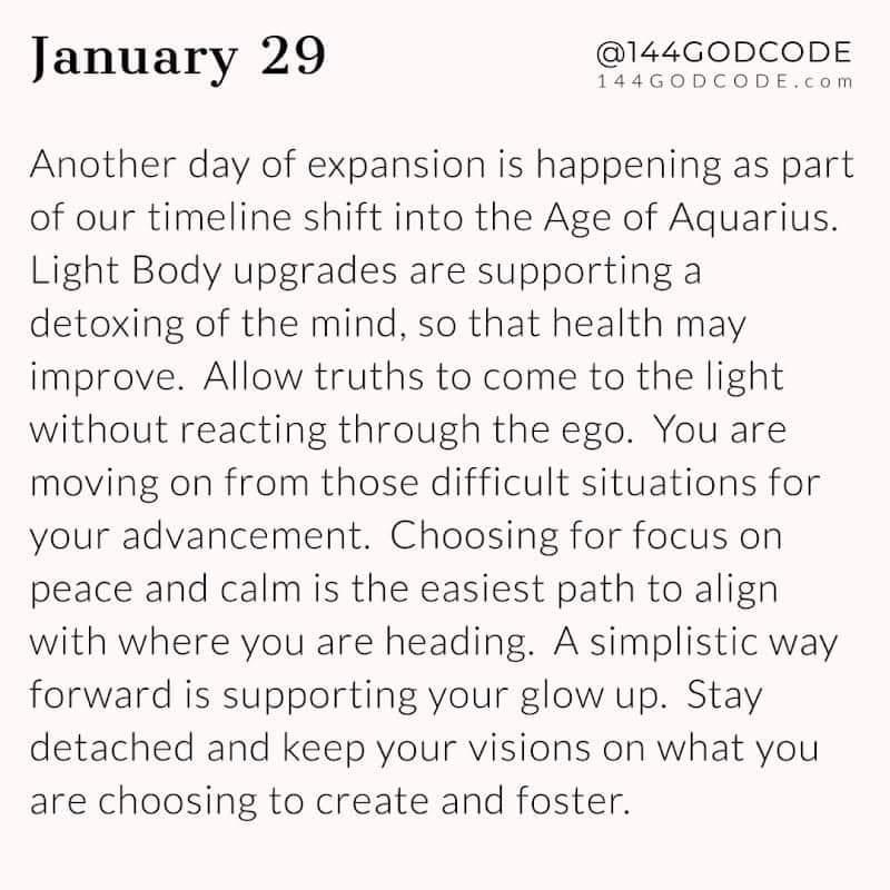 Another day of expansion is happening as part of our timeline shift into the Age of Aquarius. Light Body upgrades are supporting a detoxing of the mind, so that health may improve.