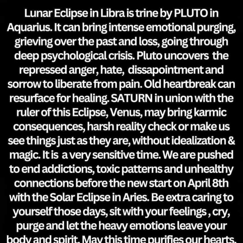 2 Powerful Eclipses are gaining momentum. The Lunar Eclipse on March 25th is carrying Lunar Feminine Energies, and the Total Solar Eclipse on April 8th is carrying Solar Masculine Energies, together activating Absolute Energetic RESET and Cosmic Turning Point Solar and Lunar Eclipses always come in pairs, due to the orbital alignments, carrying very Transformative, Destined Energies, serving as Catalysts to our Density’s Calling.