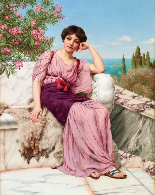 [Image: Sweet Dreams oil on canvas by English painter John William Godward (1861-1922).]