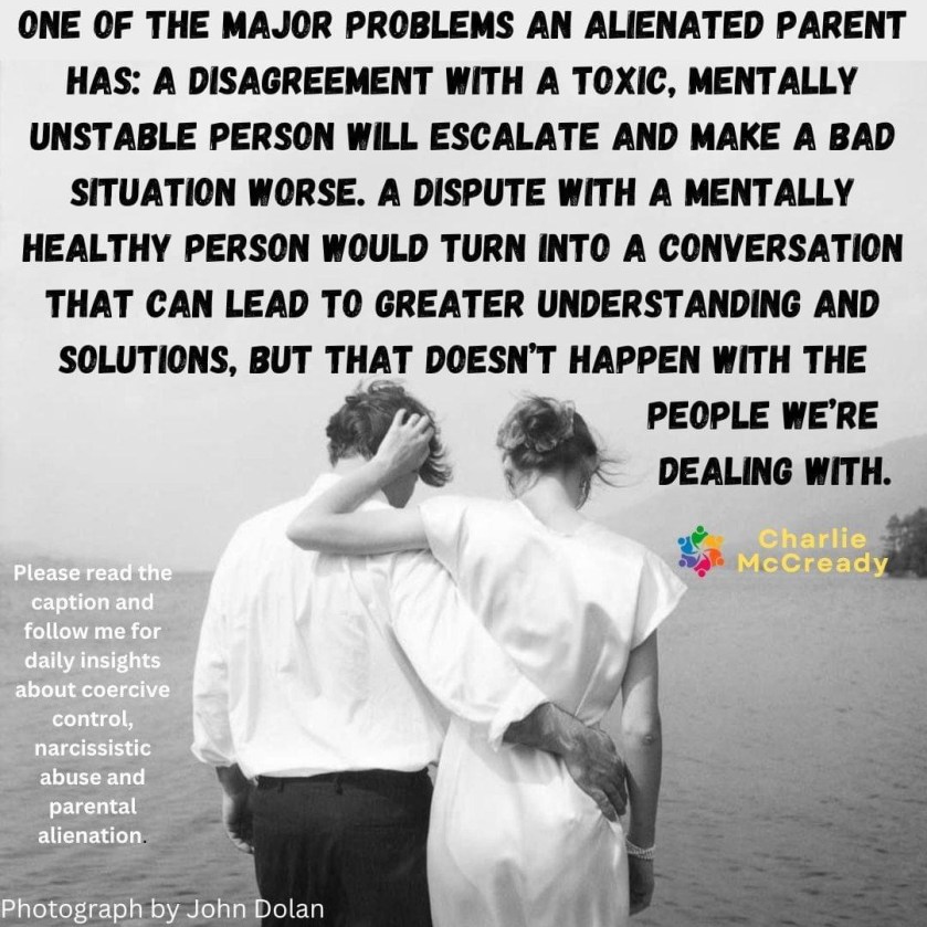 For an alienated parent dealing with a toxic co-parent or partner, navigating these dynamics is particularly challenging. The toxic behaviour may be directed not only towards the parent but also potentially influencing the child involved in the alienation. Understanding these dynamics is crucial for managing expectations and choosing appropriate strategies. Establishing and maintaining firm boundaries, focusing on self-care, and seeking support can also be essential strategies for coping with the unique challenges presented by disputes with toxic people in the context of parental alienation.