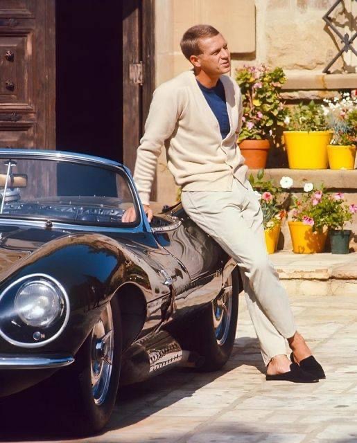 Actor and driving enthusiast The “King Of Kool” Steve McQueen poses with his 1956 Jaguar XK-SS Roadster at his Brentwood home in June, 1966 in Los Angeles, California.