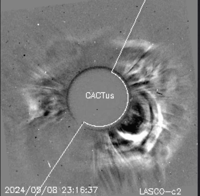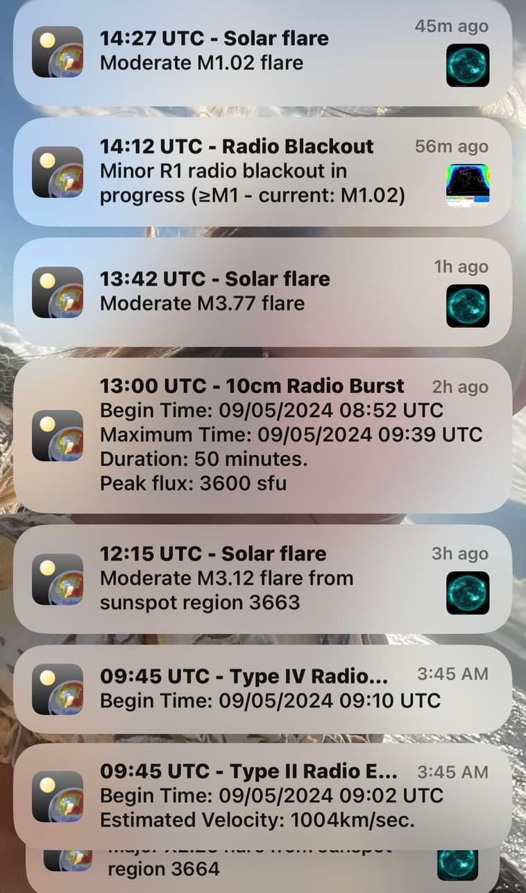 The flare eruptions 🌋 have been so constant, the sun has been registering close to a constant M flare release. In addition, many of the flares are releasing powerful level 2-4 halo CMEs (coronal mass ejections) that with the right solar winds and direction can produce geomagnetic storms (what we see as the Aurora borealis). 💥 I anticipate we will reach these storm conditions by Friday with even more X flare eruptions.