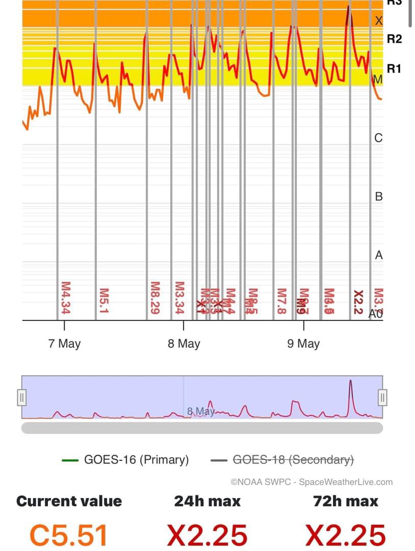 In all my years of following solar weather, I have NEVER a seen the sun ☀️ so active releasing a constant barrage of solar flares. Overnight, we received another eruption of flares including another 💥X2.25=9 solar flare and several 💥💥💥M8-9 level flares, very close to an X flare. If I’m counting right, that makes 7X flares in 4 days!