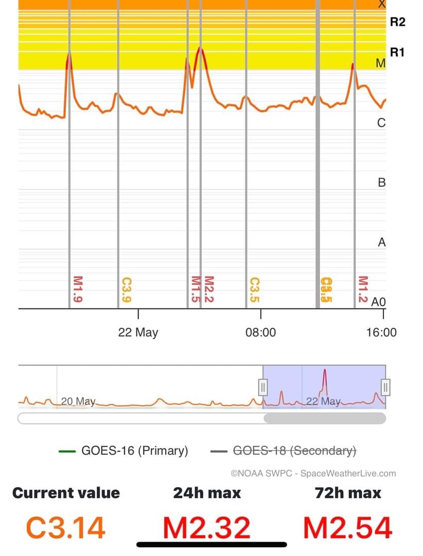 Other resonances are also reflecting elevated energy with a red out on the Cumiana and elevated magnetic fields. In the last 24 hours, the sun released 4 M class solar flares.