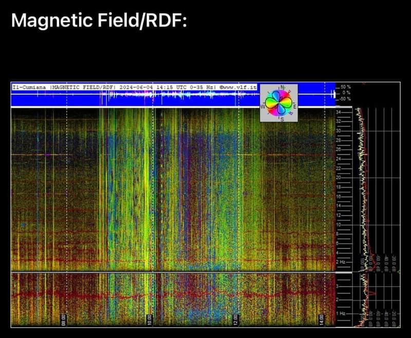 Red out on the Cumiana resonance and a timeline shift reflected on the Schumann after a huge inporing of light yesterday. The magnetic 🧲 field is also elevated. The sun also continues to release M flares with 3 in the last 24 hours.