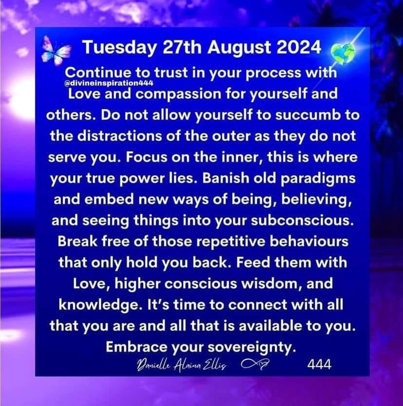 Remaining calm and loving towards yourself and others, as we are moving away from this now. The truth will be revealed, leading to your ultimate freedom. The Masculine and Feminine energies are now merging and working together to bring forth your Akashic inheritances with success, we now move forward, grateful for all we have overcome and all that we are receiving. It is a time to return home to your true self ,