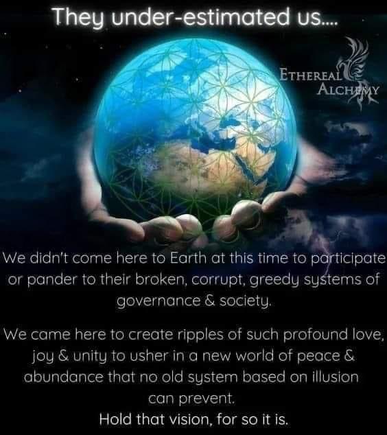 This comes from Gregg Braden: “Researchers have found it takes a specific number to make a change in our world, and I think you’ll be surprised at how few it takes. Studies show that the first signs of techniques, such as meditation, positive thinking, etc., are noticed when the number of people is greater than the square root of 1% of the population. That number means that in a city of 1,000,000 people, for example, the square root 1% of that population is only 100 individuals. In our world, 8 billion), that number is only 8000. Think of that, only 8000 in a world population of 8 billion!”