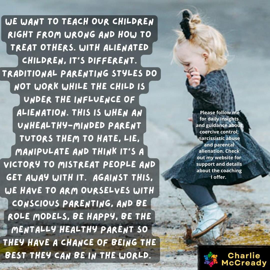 Traditional parenting styles often do not work with alienated children because the natural attachment bonds with your child are under attack. You are effectively parenting with your hands tied. By adapting your approach, arming yourself with conscious parenting, and being a role model of mental health and happiness, you give your child the best chance to resist the negative influence of the alienating parent and develop into their best selves.