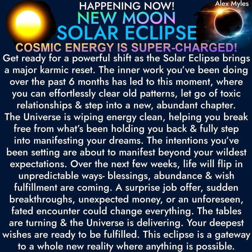 Ultimately, this Solar Eclipse is creating the perfect environment for transformation. It’s a cosmic reset—a fresh start where only what serves your highest good will stay. Let go of the old, embrace the new, and trust that this is the beginning of something incredible. The best is yet to come.