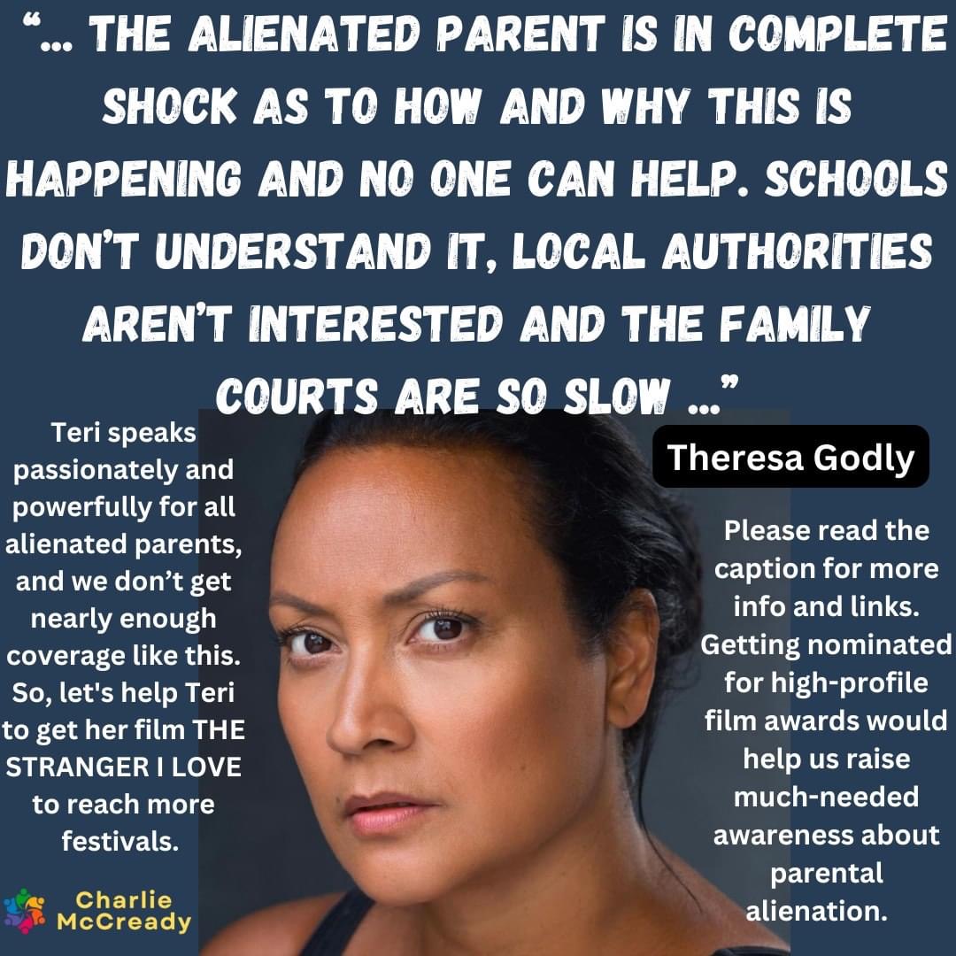One week until Theresa Godly’s The Stranger I Love, a short film about parental alienation, screens at the Sussex International Film Festival, where it is nominated for Best UK Short Film. Please get tickets or support however you can.