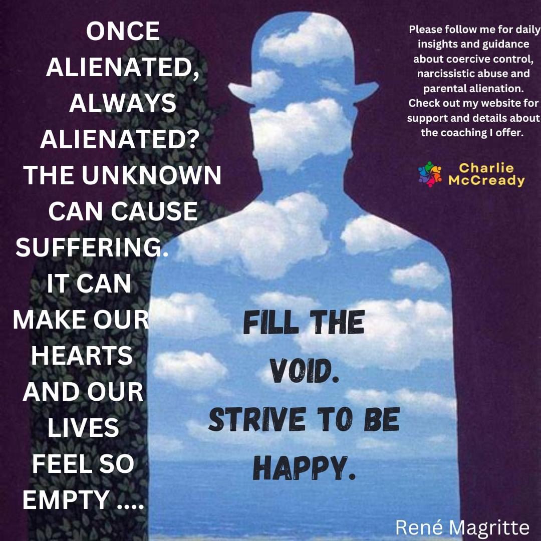 Alienation can feel like it lasts forever. I will explain by defining the word ‘alienation’, which is part of the term ‘parental alienation’. Alienation refers to a state of being cut off, disconnected, or isolated from others or even from oneself. It’s not just the loss of our children from our lives; it’s the deliberate destruction of the bond we once shared—a loss created through manipulation by a vengeful ex or others (enablers, including the family court and mental health establishment). This grief is often compounded by deep feelings of rejection, helplessness, and disbelief that such a severing could be engineered. But it’s important to remember that while the alienating parent may keep trying to provoke us—using every reaction as proof against us—the most powerful response is to refuse to remain stuck in anger and grief. (I know it’s not easy, having been through it myself, and even as a coach, it had a huge impact on my life).