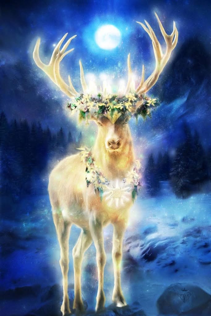 It was never “Father Christmas” that brought gifts and the return of light at the Winter Solstice—it was “Mother Christmas,” the ancient Deer Mother of old. It was she who once flew through winter’s longest darkest night with the life-giving light of the sun in her horns.