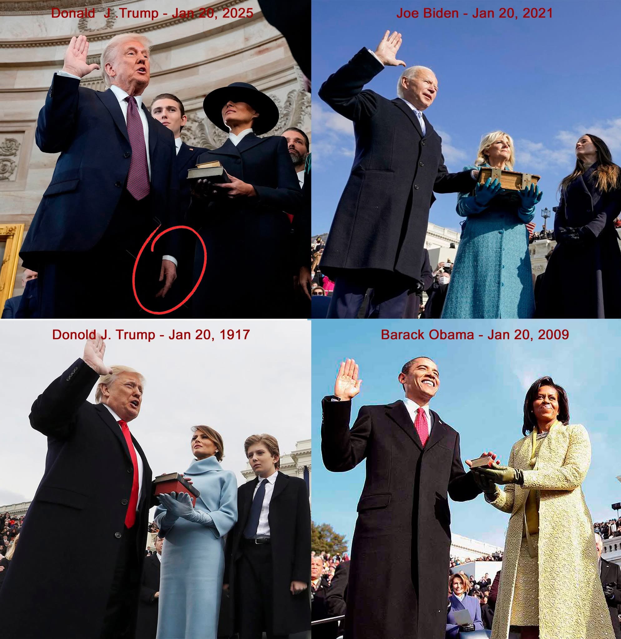 “Should the American people demand President Trump to re-take the oath, this time placing his ‘left hand’ on the bible and raising is right hand before taking the oath of office as President of the United States America.”