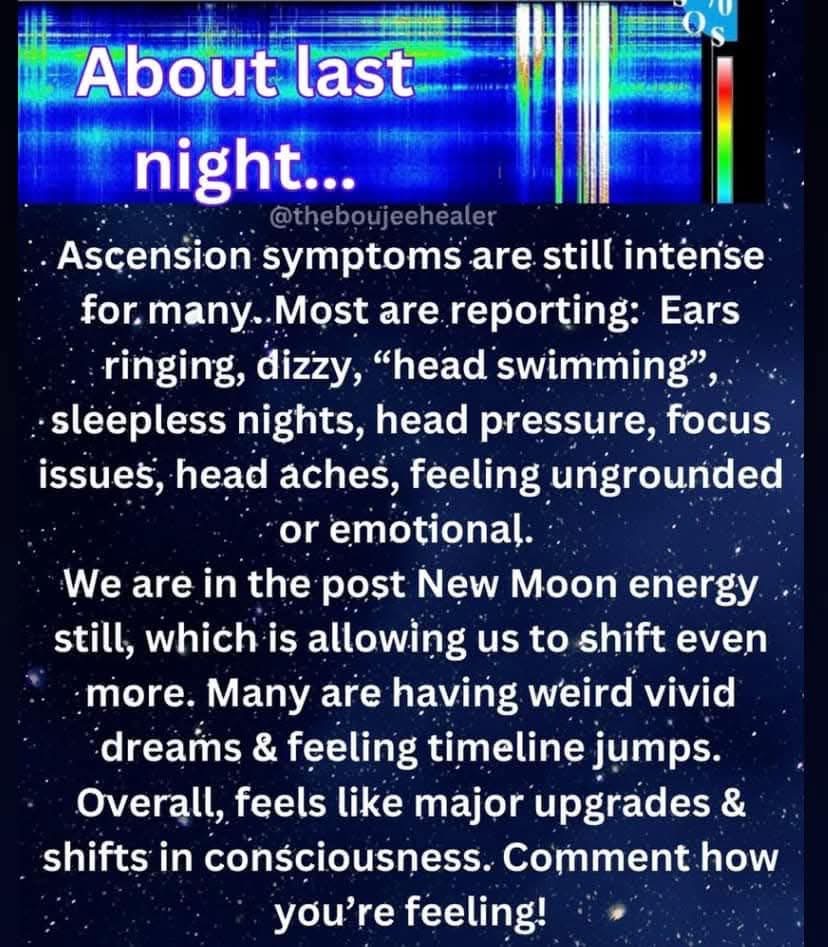 The Ascending can also be feeling, Full of energy, optimism, Excitement, Motivation. A stronger desire to set new things in motion, Flashes of insights and epiphanies , Increased empathy, compassion, Emotional maturity, Emotional cleansing, completing karmic family patterns. Increased visions of the future .