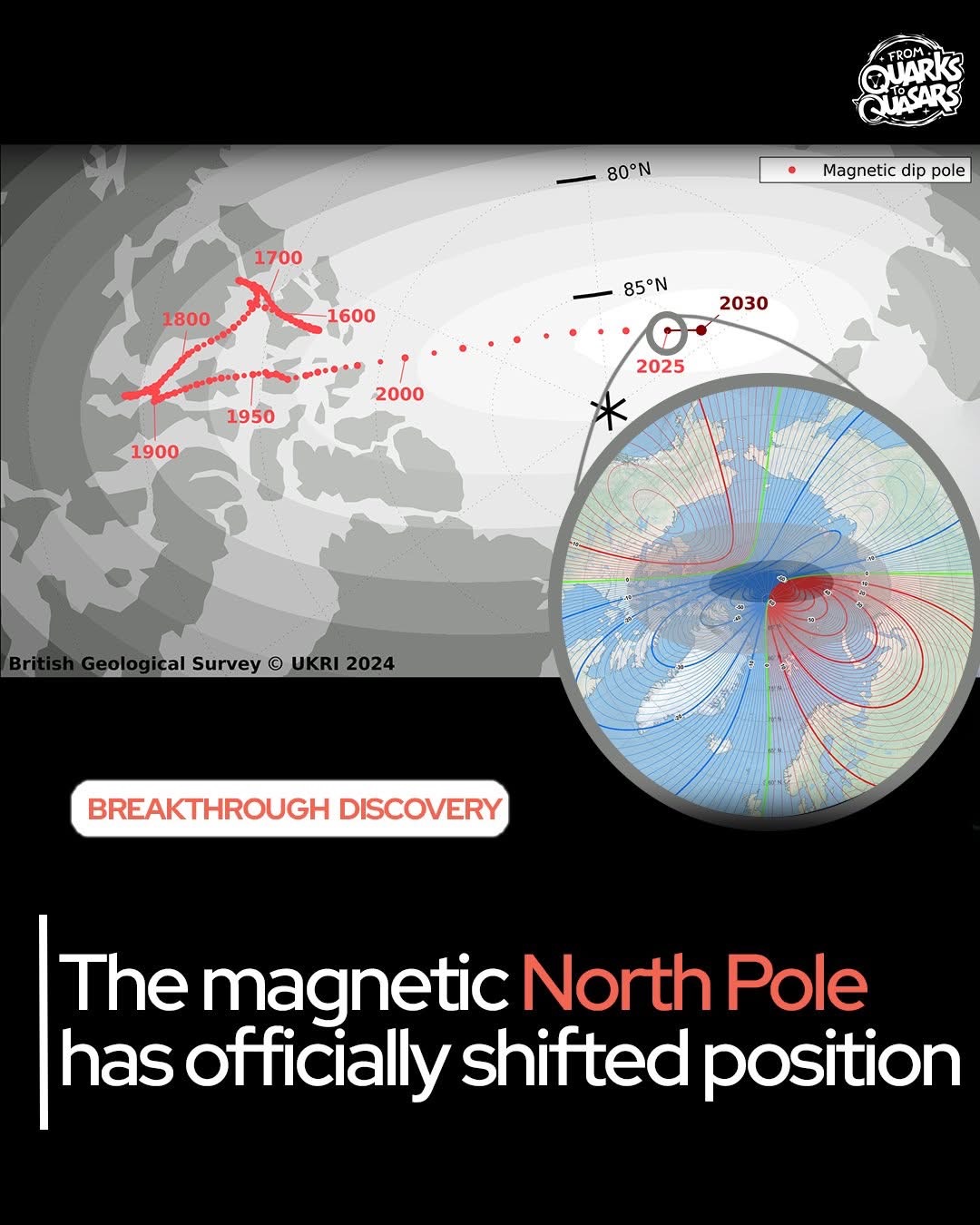 The magnetic North Pole has officially shifted, continuing its journey away from Canada and toward Siberia. This means it’s time to recalibrate the navigation systems on ships and airplanes. But there’s no need to worry – your phone and GPS will update automatically!