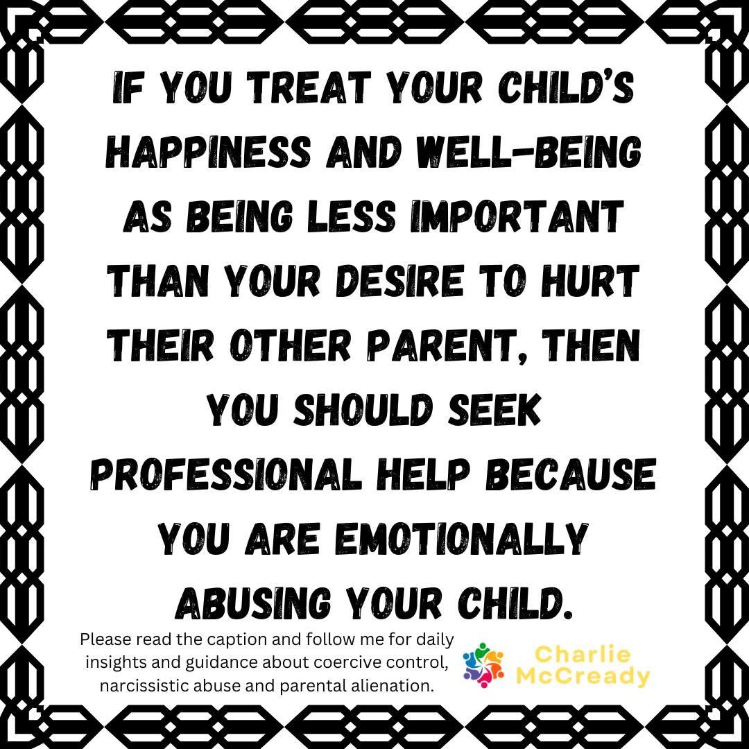 I look forward to the day when there’s a wider public understanding of what we call ‘parental alienation’ (child psychological abuse) and support, interventions, education, and a focus on encouraging the pathogenic parent to seek professional help.