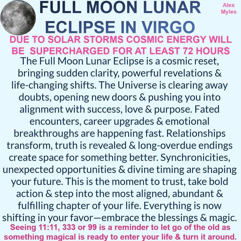 The Full Moon Lunar Eclipse in Virgo is bringing powerful shifts, deep realizations, and long-awaited breakthroughs. This energy is heightened by intense solar storms, making emotions stronger, transformation faster, and intuitive downloads more frequent. The Universe is clearing away outdated cycles, removing obstacles, and guiding you toward new opportunities that align with your highest potential.