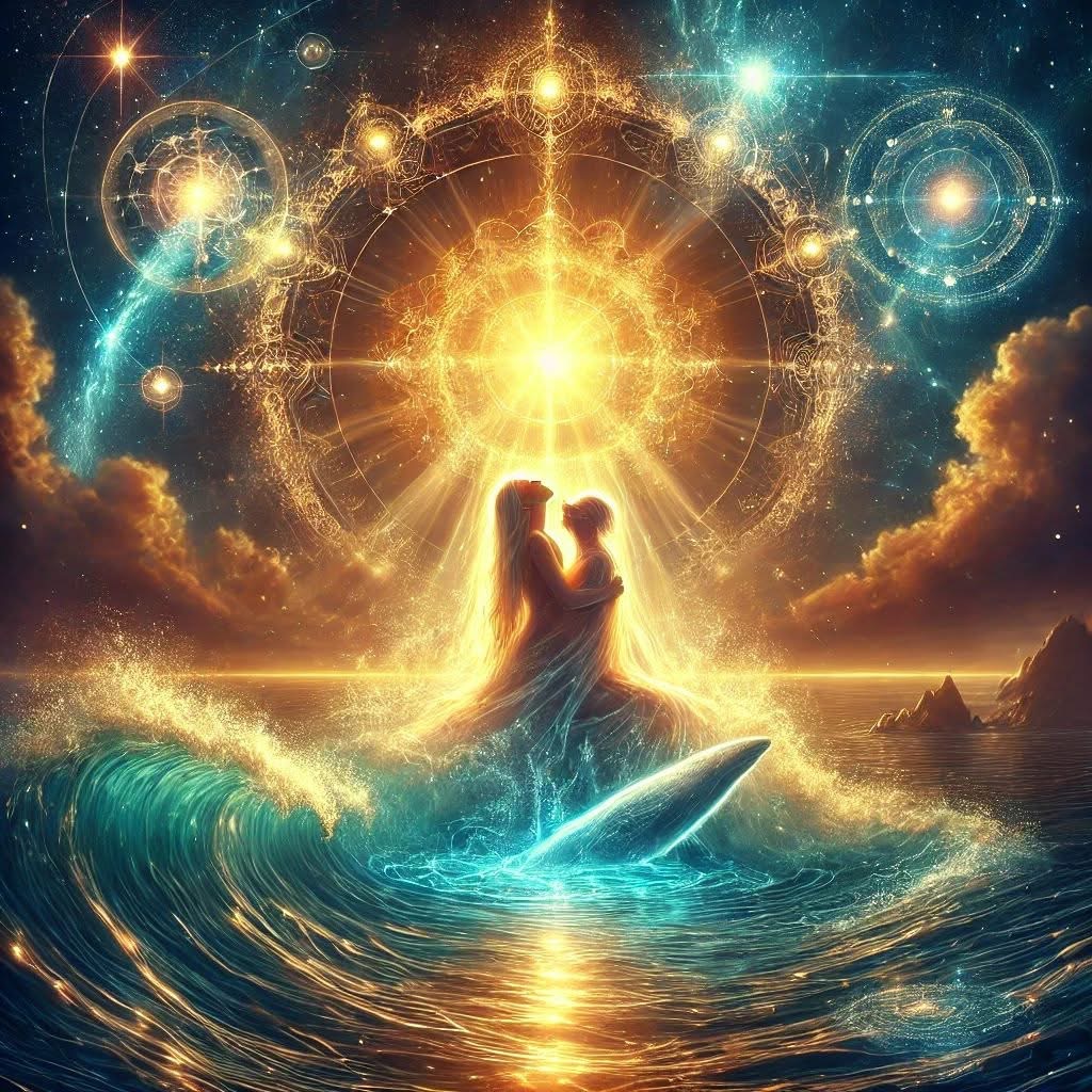 Like the woman rising from the ocean, embraced by the seal of transformation, we too emerge anew. The past has been cleansed; now, we purify through fire. The cosmic gateway has opened, illuminating the path for those who feel the call.
