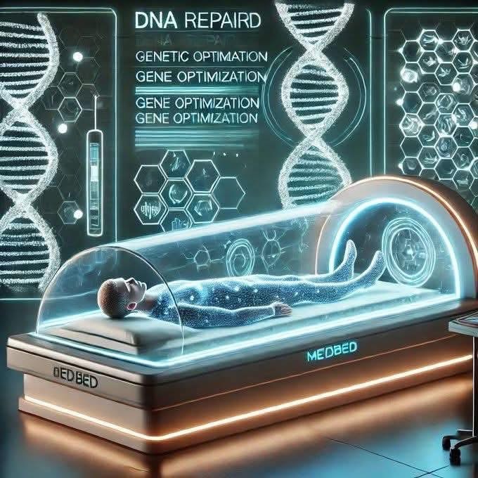 MedBed β DNA Repair and Genetic Optimization Introduction Imagine a future where aging, hereditary disease, and genetic mutations will no longer be an issue! π MedBeds harness DNA repair technology based on quantum theory to restore genetic integrity, reverse mutations, and optimize cellular function at the deepest level. How Does MedBed Repair DNA? πΉ3D holographic mapping of DNA: performs genetic sequences scanning, detecting mutations and cellular damage. πΉ Quantum frequency therapy: uses targeted energy waves to repair DNA filaments and optimize gene expression. πΉ Stem cell activation: stimulates the natural production of stem cells, regenerating organs, tissues and bones. What Can MedBed DNA Repair Do?