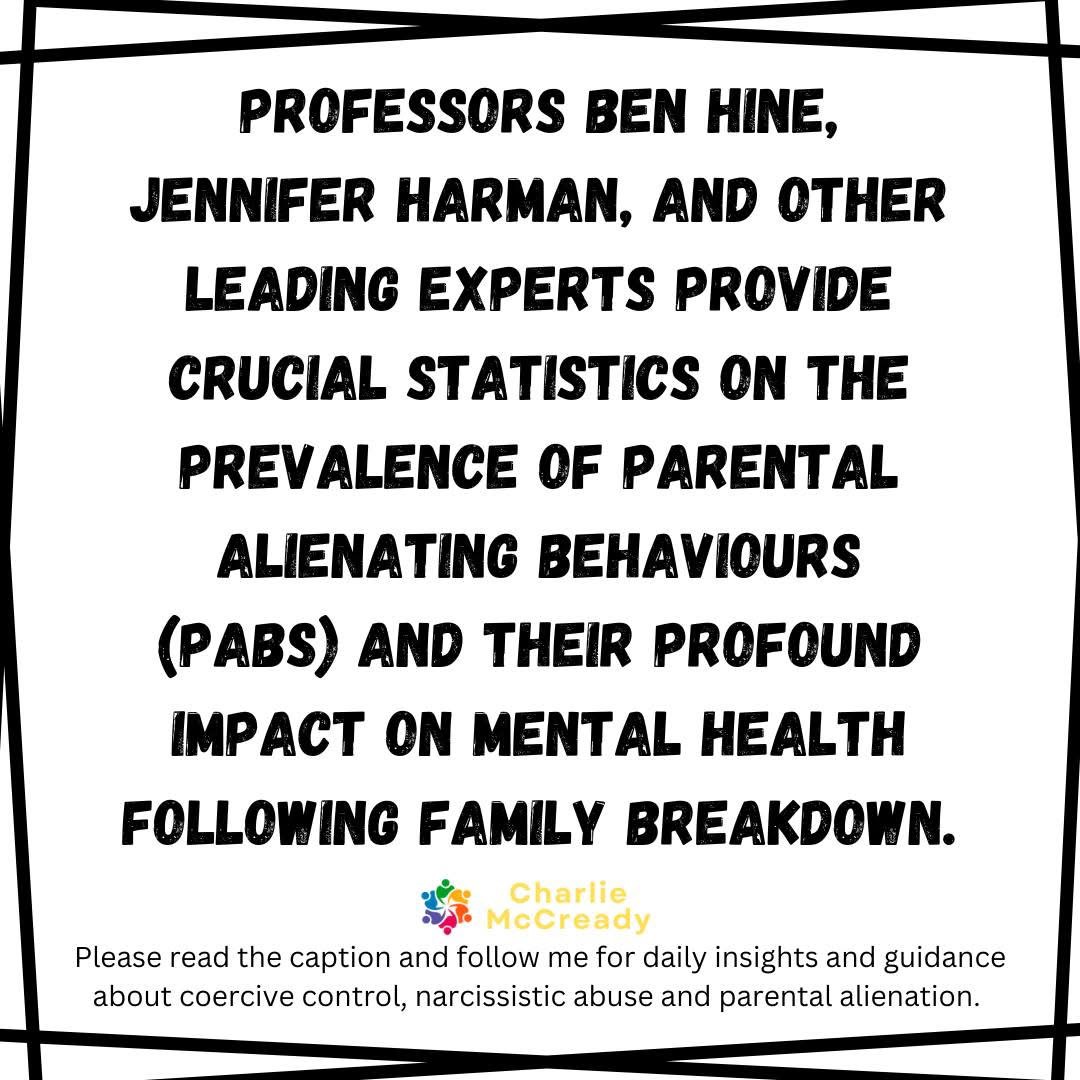 Last year, I wrote about the stellar work of Professor Ben Hine, a Professor of Applied Psychology, and so it was a real pleasure to recently hear him discussing his groundbreaking research into the effects of family breakdowns, separation, and divorce on parents and children. His research, conducted in collaboration with other luminaries in the field, such as Jennifer Harman, sheds crucial light on the prevalence and impact of parental alienating behaviours (PABs) as well as their profound impact on mental health, and it offers valuable insights into what needs to change to address this pervasive issue.
