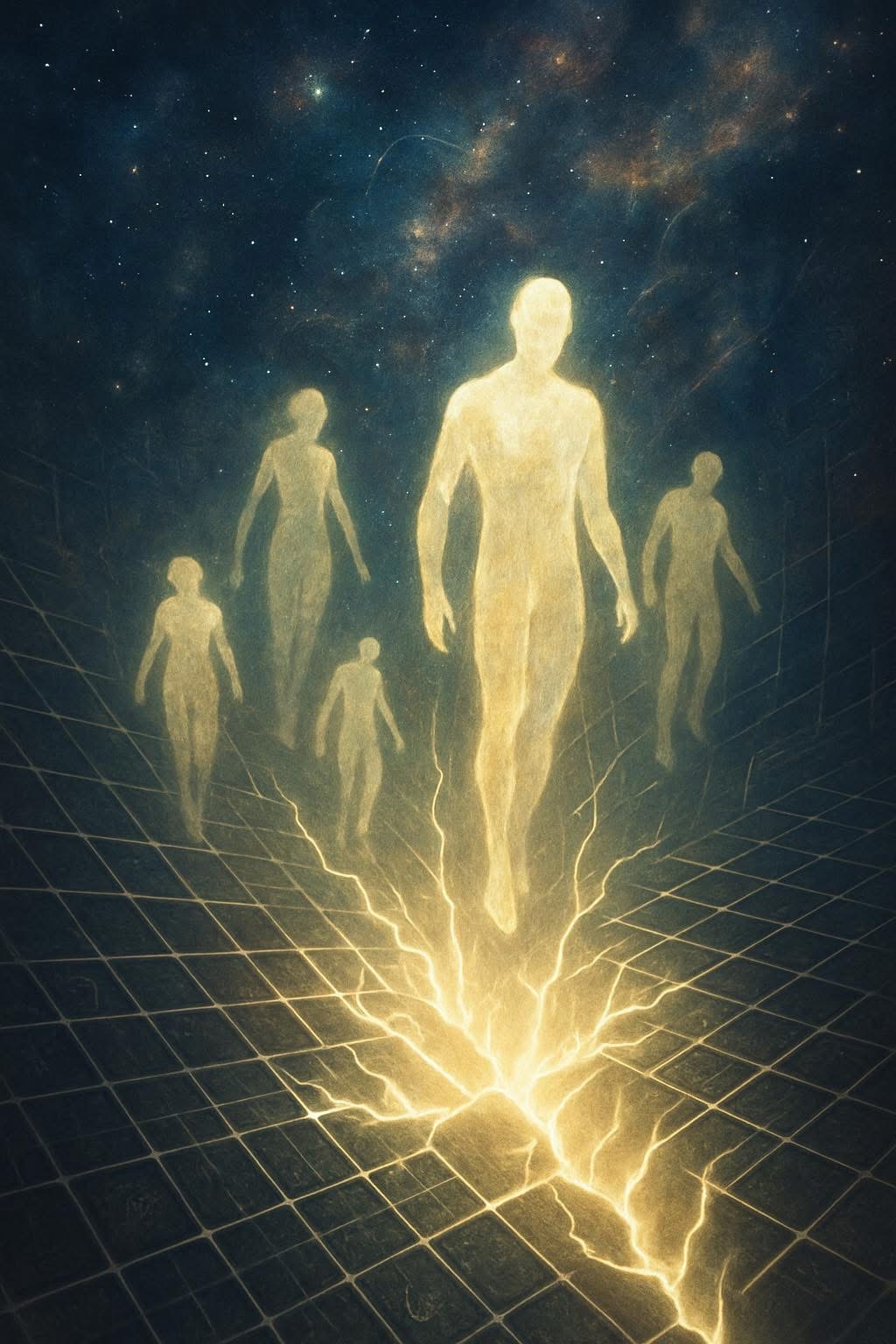 From the higher realms — the After-Realm, the place beyond clocks and calendars — we saw the state of this world. We saw the quantum grids tightening around the sparks of divine consciousness. We saw beings of power trapped in endless loops, recycling through lifetimes of amnesia, chained by false histories and artificial time.