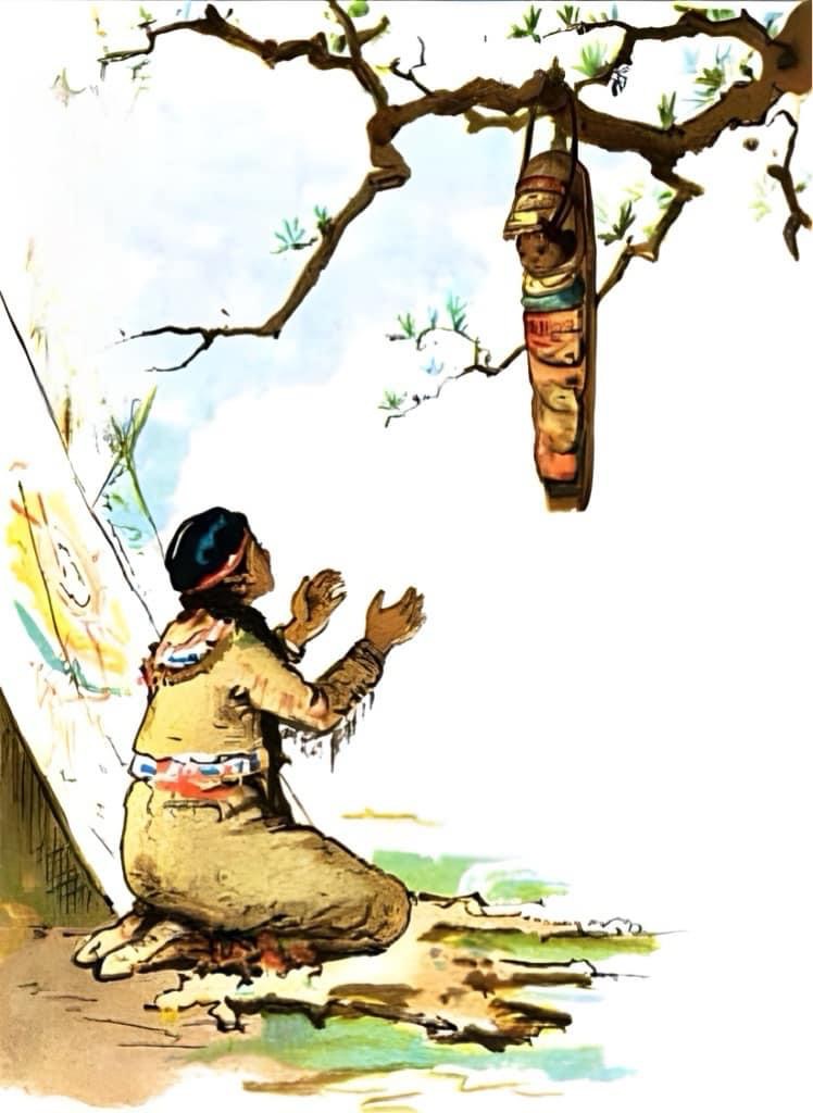Davy Crockett’s older sister, Effie Crockett was invited to help some mothers in the Muskogee Tribe. Once she arrived in camp, Effie laughed at what she saw. The Muskogee Tribe had a custom of cradling their pappooses among the swaying branches of birch trees. This protected their babies from ground insects, the sun, and wild animals.