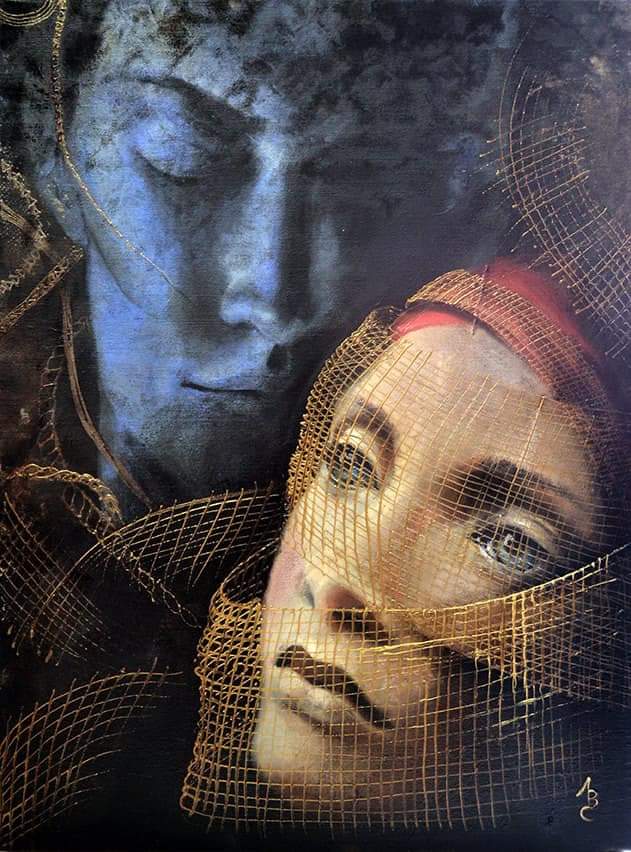 And so with this work, I will not attempt to overdefine it. It is a story of sisters intertwined, of ancient longing, of cosmic purpose that exists though few may understand it. Just as one woman carries a veil of stars, and the other the moon, their intent is only revealed to the careful study of the viewer’s eye. It longs to tell it’s story to those who have the eyes to hear it