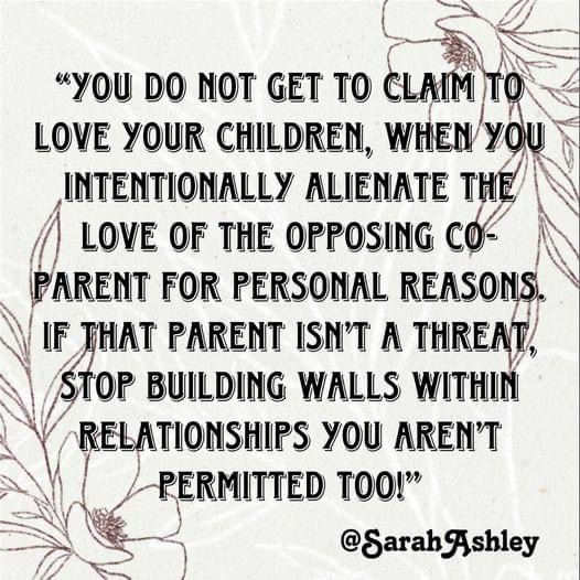 We are up against several well-funded and supported, united lobbies who claim parental alienation not only doesn’t exist but is a dangerous concept. For those of us who have been through it – fathers, mothers, grandparents, step-parents, step-siblings, not to mention alienated children – this is frustrating and upsetting. I hope we can come together, those of us who work in this space – life coaches (parental alienation) such as myself, legal and mental health professionals, those involved in safeguarding, schools, family courts, therapists – and collaborate. I wish I could multiply myself x 12, I am, as I’m sure you can imagine, at full capacity, full-time, doing these posts every day, seeing my 1-2-1 clients, and trying to advocate and engage others who might be able to lobby, support and spread awareness.