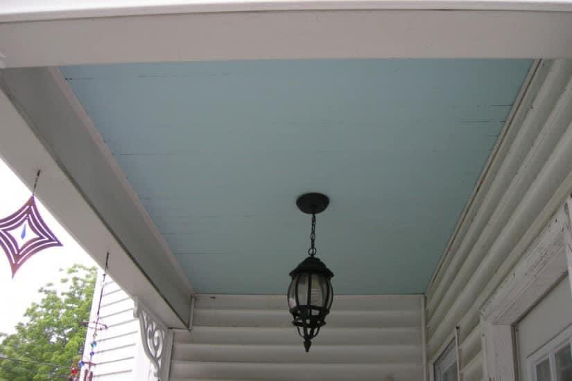 But there’s another, perhaps even more common reason cited for such a practice. Light blue ceilings are said to discourage wasps from building their nests on the ceiling of your porch, because the light blue color tricks the unwelcome insects into thinking the ceiling is part of the sky. Apparently, spiders (and perhaps even other bug pests) are discouraged from hanging out on the porch for the same reason.