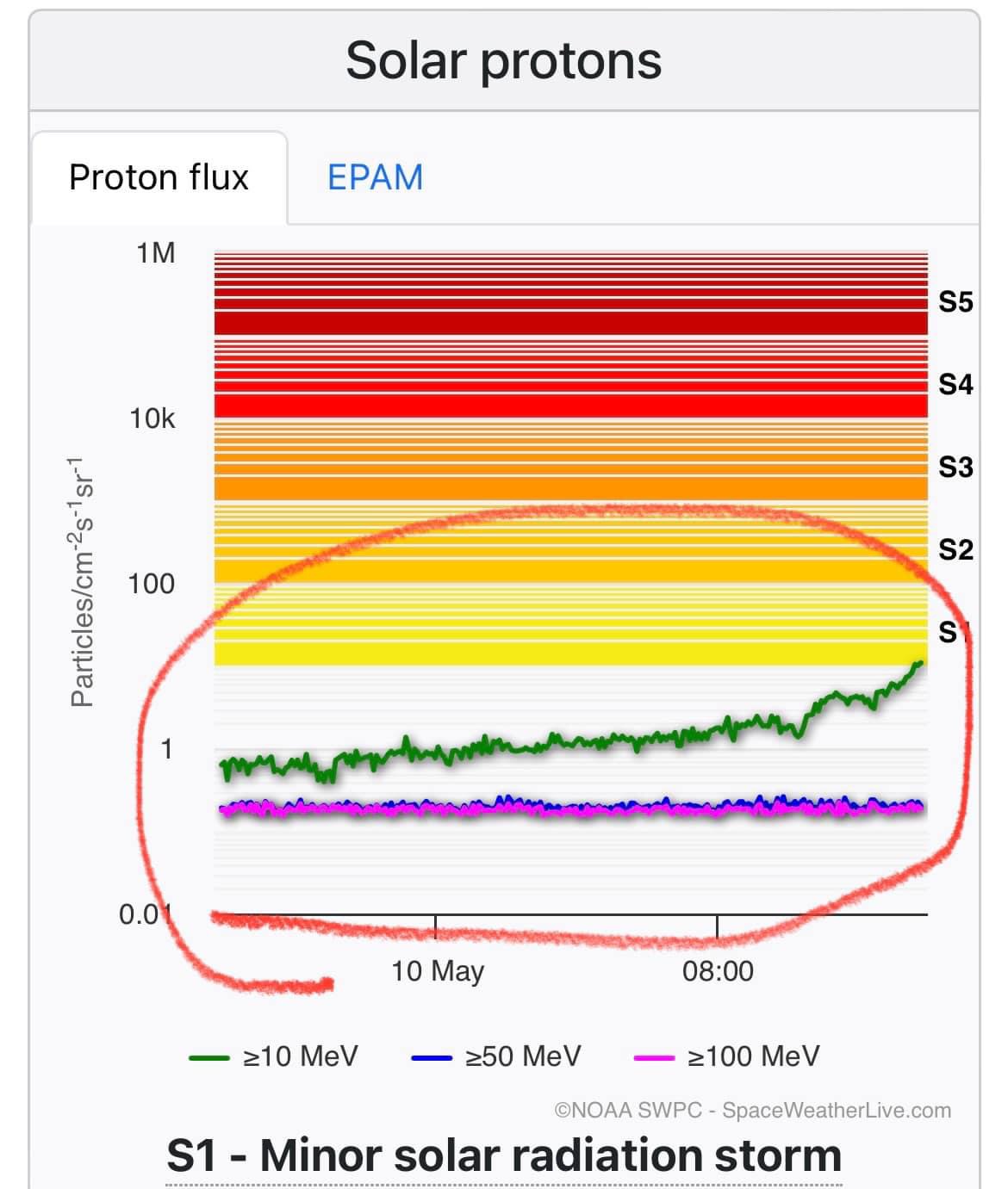 So we are officially in a solar radiation storm.