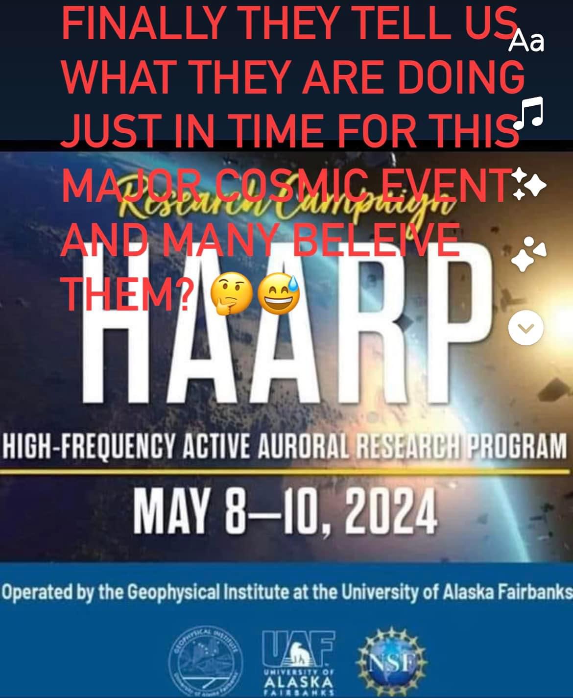 Many are sharing convenient reports that just happened to be released for this cosmic solar storm saying it was all Haarp. Since when do these programs “announce” what they are doing? This is the true bluebeam project. Just like the fear tactic programs of shooting demon rockets and starting cern just for the eclipse while a “devil” comet was visible. 😅