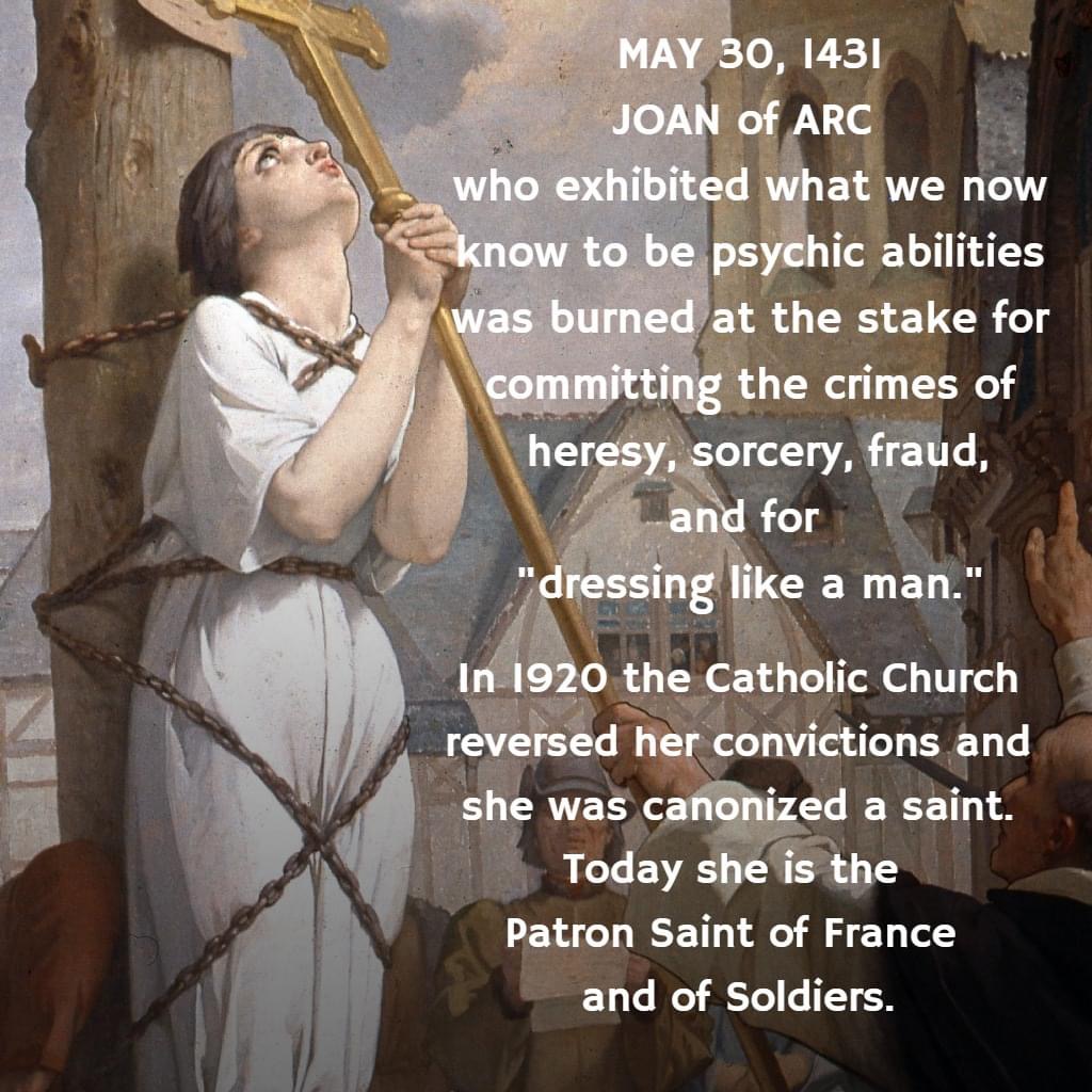 Today we remember Joan of Arc who is one of the most unusual figures in history. If it weren’t for the thousands of pages of court transcripts from her trial, she would most likely have been dismissed as a myth. Yet she did live, she was real and she exhibited what may be considered psychic and mediumistic abilities. She saw and heard spirits she identified as St. Michael, St. Catherine and St. Margaret and through that guidance she rallied a defeated France to victory in the Hundred Years War. The controversy over her abilities continues and her life and death are a testament to the oppression of people who are “different” and people with psychic abilities have endured and continue to endure to this day… @liquidstudiosentertainment @bestholisticlife_magazine @bestholisticlife @omtimes @transformationtalkradio @coast2coastam @coasttocoastamcommunity @supernaturaluniversity @darkmatternewz