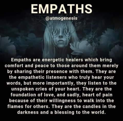 As I understand it , every empath must have the relationship with a Narcissist, to elevate to higher empathy and to acknowledge both shadow and light .To accept anger as part of life , but have the ability to not allow anger to control me or step too far out of my peace .