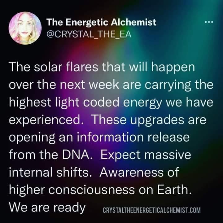“NOT SURE WHAT HAS COME THROUGH IN THE LAST TWO HOURS (STARTING 4 PM EDT-ISH) BUT THE INCREDIBLY POWERFUL ENERGIES! IT’S NOT SOLAR OR GEO.”