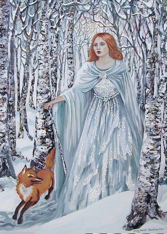 Shapeshifter, with one foot of a bird, you walk, attended by both goose and swan. Through the pale birch wood oftentimes you glide, wearing a cape of softest feathered down.