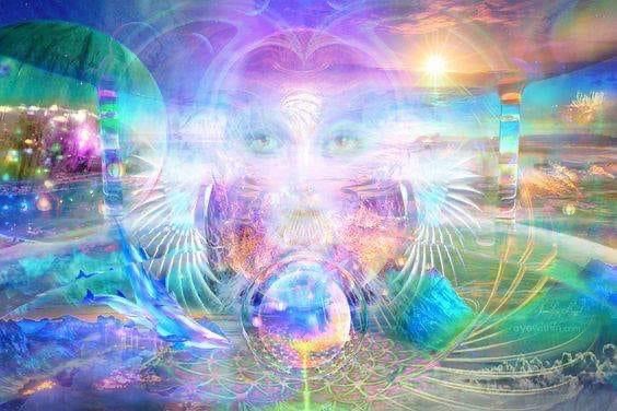 Seventh-dimensional beings come in many forms. Some appear as swirling ribbons of rainbow-colored energy.
